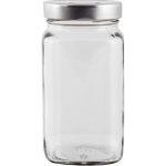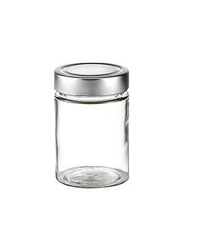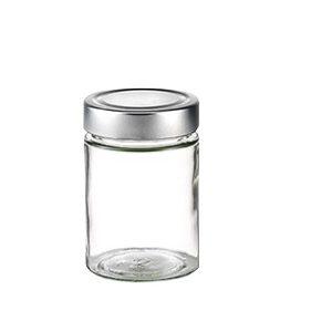 Βάζο γυάλινο με πώμα inox σε χρώμα ασημί.
