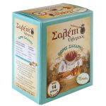 Συστατικά: Ζάχαρη βιολογική, σαλέπι καλλιεργημένο ειδικής επεξεργασίας,άνθος αραβοσίτου, μαστίχα Χίου 2%, πράσινο κάρδαμο 2%, βανίλια, πιπερόριζα.